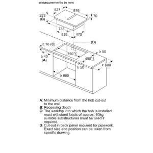 ‣ Kích thước hộc bếp: 750R x 490S x 223C mm