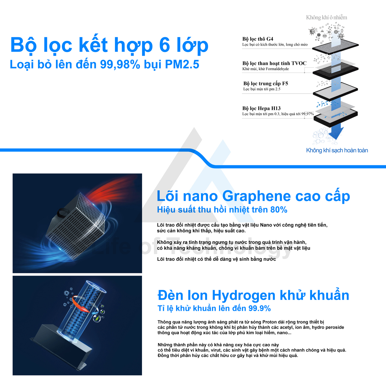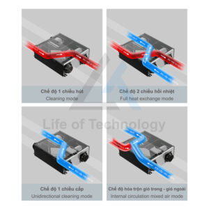 Hai luồng khí này không trộn lẫn nhưng trao đổi nhiệt thông qua lõi hồi nhiệt, giúp không khí cấp vào phòng đã được điều hòa nhiệt độ gần bằng nhiệt độ trong nhà. Nhờ đó, không gian luôn thông thoáng mà không gây sốc nhiệt.