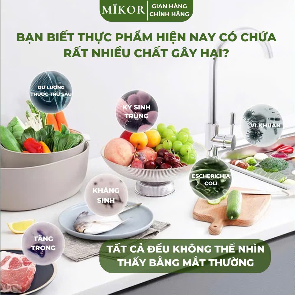 Trong thời đại thực phẩm tiềm ẩn nhiều nguy cơ từ thuốc trừ sâu, vi khuẩn và hóa chất bảo quản, việc làm sạch thực phẩm đúng cách là điều vô cùng cần thiết. Máy khử khuẩn thực phẩm MIKOR MR11 công nghệ điện phân Hydroxyl ra đời như một giải pháp hiện đại giúp bảo vệ sức khỏe gia đình từ những bữa ăn hàng ngày.