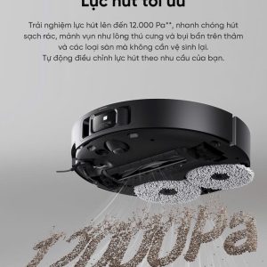 Dreame X40 Ultra sở hữu lực hút tối đa lên tới 12.000Pa, mang lại hiệu suất mạnh mẽ, giúp giải quyết dễ dàng các vấn đề như bụi trong khe hở, bụi trên thảm và bụi dưới đồ nội thất. Với công nghệ Turbo Force 5 cùng động cơ hiện đại có tốc độ quay lên đến 48.500 vòng/phút, robot này đảm bảo khả năng hút bụi sạch sẽ và tối ưu.
