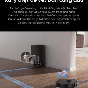 Hệ thống cánh tay robot kép giúp Dreame X40 Ultra không chỉ làm sạch những khu vực dễ dàng như chân bàn, ghế, kẽ cửa, và bậc thềm mà còn mở rộng phạm vi làm sạch đến các góc tường vuông, hình dạng đặc biệt, và các khe hẹp bên dưới đồ nội thất thấp, mang lại hiệu quả làm sạch toàn diện cho ngôi nhà của bạn.