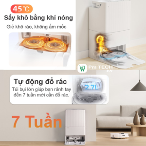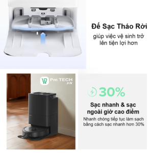 Dock sạc được trang bị cho Roborock Q Revo là trạm sạc toàn năng với thiết kế tinh tế, gọn nhẹ nhưng chứa đầy đủ chức năng tiện ích. Bao gồm: tự động đổ rác, tự động giặt & sấy khô giẻ lau bằng khí nóng, tự động bơm nước sạch vào hộp nước, đế sạc có thể tháo rời để vệ sinh, sạc nhanh hơn 30% giúp robot nhanh chóng quay trở lại dọn dẹp các khu vực còn lại.