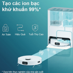 Với công nghệ khử khuẩn bằng ion bạc diệt sạch 99.9% vi khuẩn bạn có thể thoải mái đi chân trần trên sàn nhà mà không cần lo lắng. Nhờ công nghệ AI nâng cấp kiểm soát thông minh các ion bạc, không chỉ khử khuẩn giẻ lau, sàn nhà, bồn chứa nước, mà bao gồm cả các ống dẫn nước đều được khử khuẩn. Với nồng độ ion bạc ổn định đảm bảo an toàn cho người dùng, đồng thời giúp kéo dài tuổi thọ của phụ kiện lên đến 3 năm mà không cần thay thế.