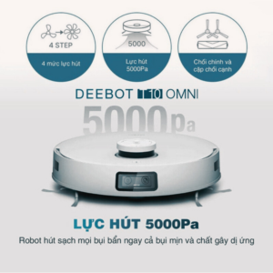 Deebot T10 OMNI có lực hút mạnh mẽ 5000Pa giúp làm sạch hiệu quả hơn, mọi hạt bụi nhỏ nhất trên sàn hay thậm chí là những hạt bụi kẹt trong các khe gạch cũng được dọn dẹp dễ dàng. Đánh bật những vết bám cứng đầu như: vết cafe, thức ăn bám đóng cặn từ lâu, màu vẽ của trẻ nhỏ,…. Và đương nhiên, bạn cũng sẽ có thể tùy chỉnh lực hút của robot để tối ưu hóa độ ồn và thời gian sử dụng pin.