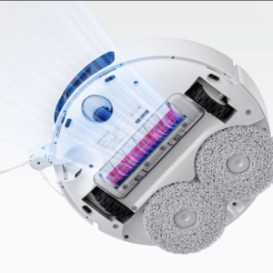 Khi gặp các khu vực khó tiếp cận như góc tường, chân tủ, khe hẹp, hai cánh tay này sẽ tự động mở rộng chổi quét và cây lau, giúp làm sạch sâu sát mép và góc khuất – điều mà hầu hết các robot truyền thống không thể làm được.